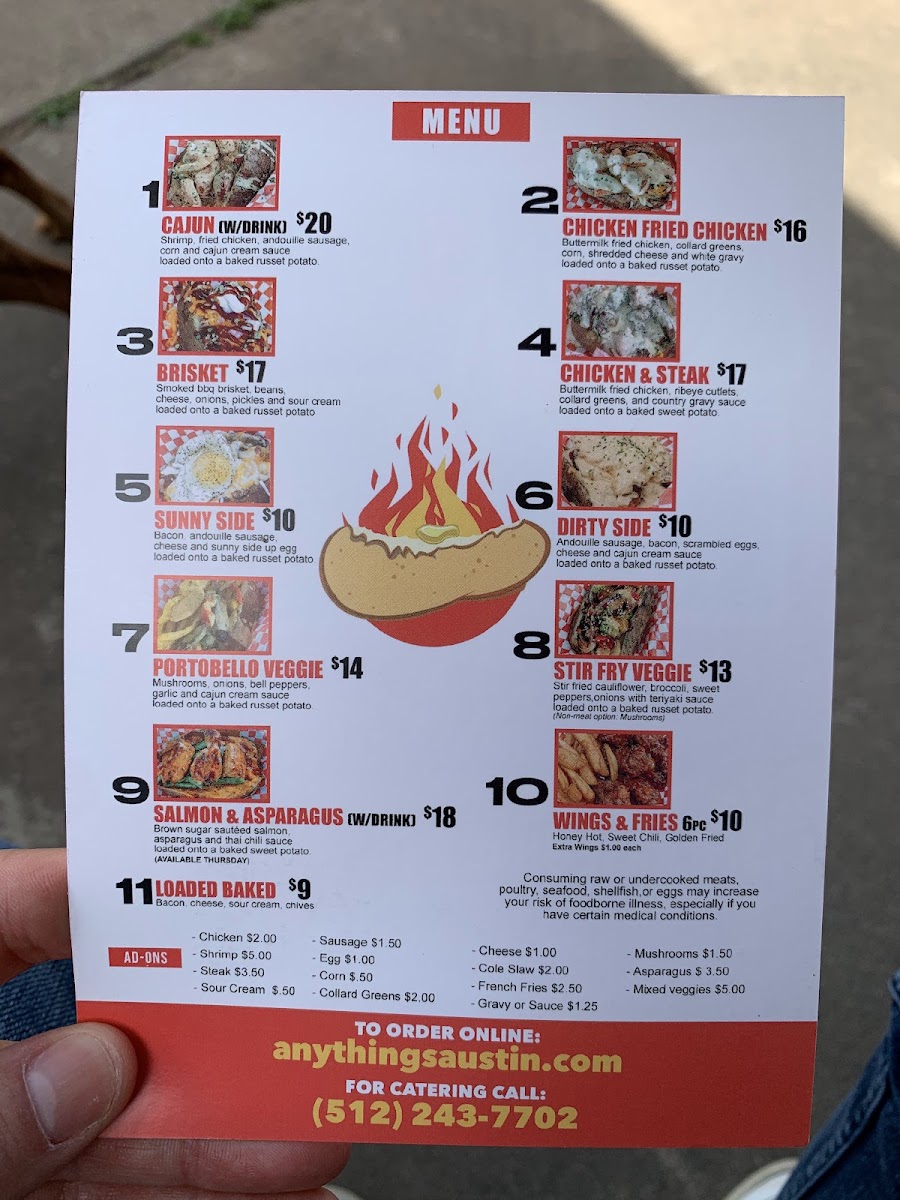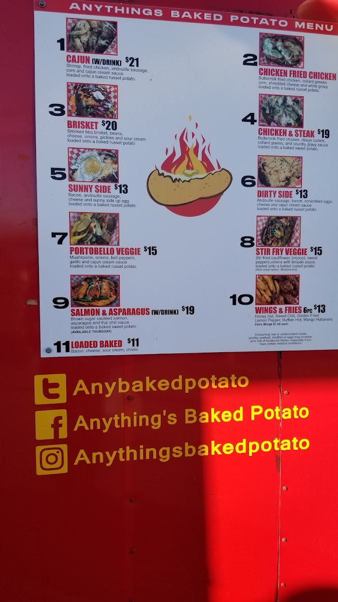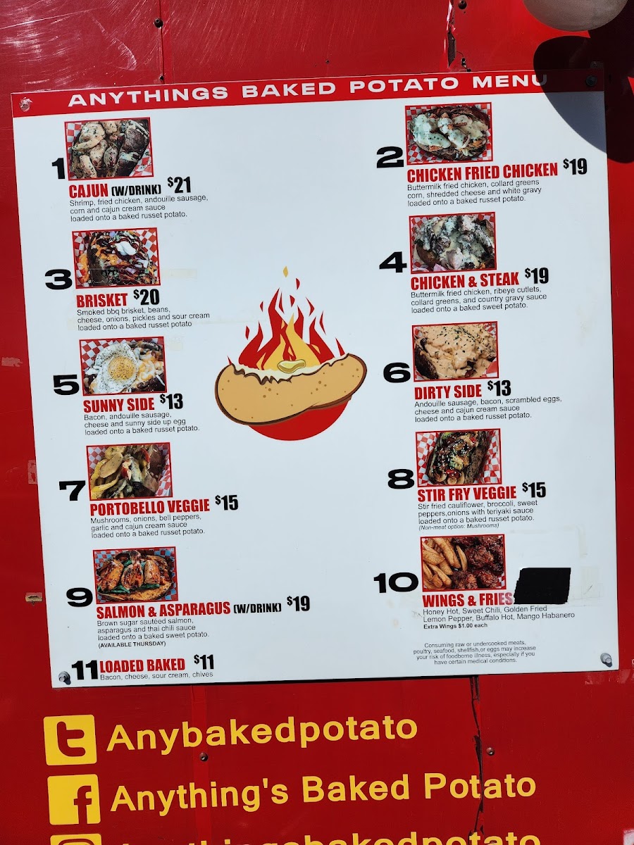 Introducing the menu at Anything’s Baked Potato, a delightful culinary experience nestled at 1326 Rosewood Ave, Austin, TX. This food truck specializes in gourmet baked potatoes, each crafted to tantalize your taste buds with an array of toppings.